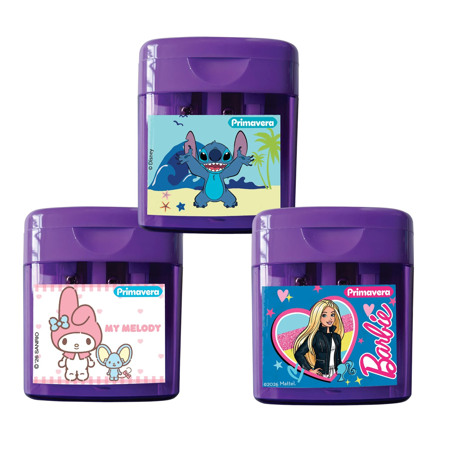Con el toque tierno de My Melody,Stitch Chill,  Barbie este sacapuntas combina dulzura, calidad y funcionalidad. Producto 100% original.